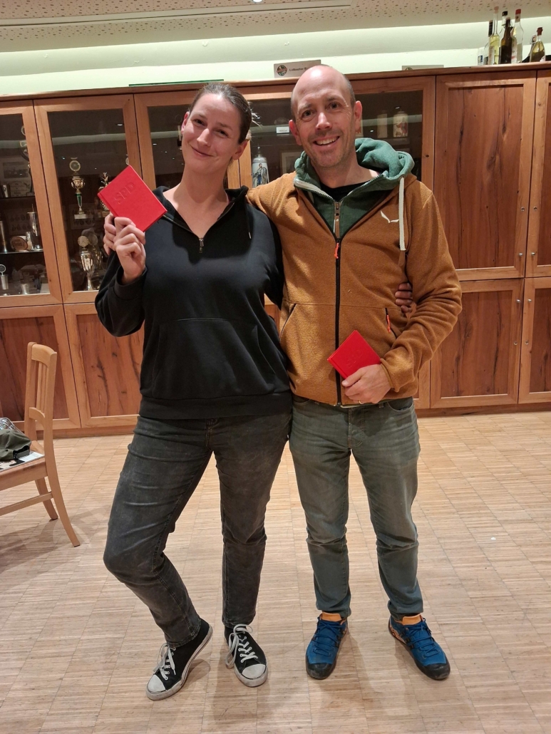 Andrea Galloth (l.), Co-Vorsitzende der Berger Sozialdemokraten, konnte den Gewinnern ordentliche Preise überreichen. 1. Preis: ein Ster Buchenholz, 2. und 3. Preis: Fresskörbe in Demeter-Qualität. Aber nicht nur für die glücklichen Gewinner hat sich der Einsatz gelohnt. 56 Mitspieler*innen hatten einen Riesenspaß im Wirtshaus Auf der Lüften in Farchach, obwohl es dort immer noch keinen Wirt gibt. Verhungern musste aber keiner, die Berger SPD sorgte selber für Speis` und Trank und manch einer entdeckte dabei seine Fähigkeiten als Wirt.