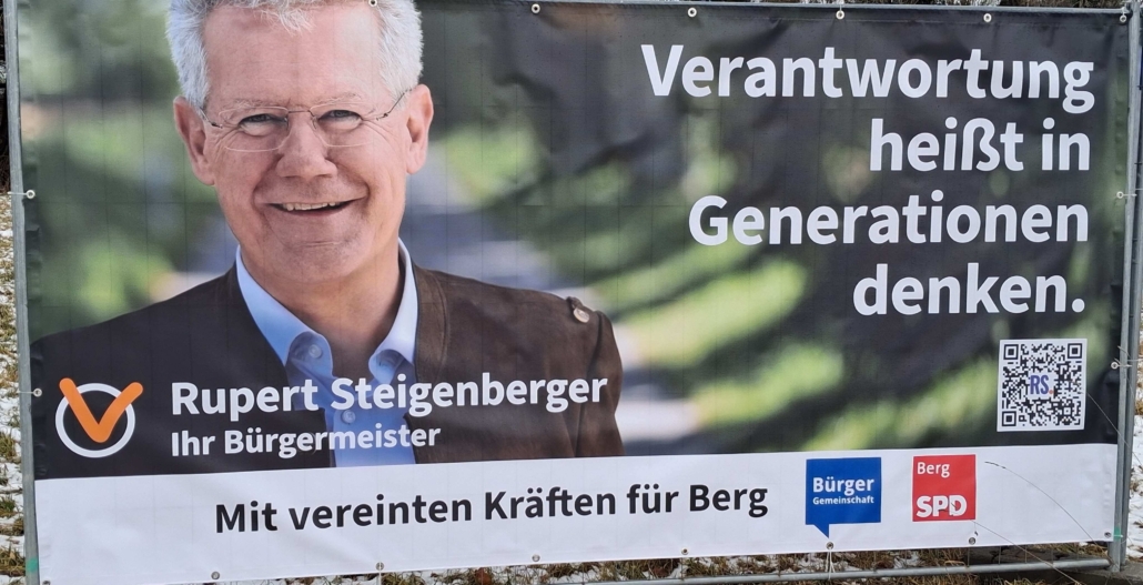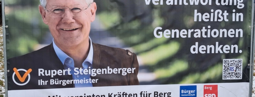 Die Berger SPD wird wieder unseren BM Rupert Steigenberger unterstützen und auch mit ihm als unserem Kandidaten in den Wahlkampf ziehen und zwar aus folgenden Gründen: Die Zusammenarbeit im GR mit ihm war immer offen und konstruktiv. Er hat das Gemeinwohl aller Bürger in ihrer Gesamtheit als Gemeinde im Blick und bedient keine Einzelinteressen. Er schaut auf die Finanzen und stellt sich auch mal unverhältnismäßigen Forderungen entgegen- auch wenn er sich dadurch nicht unbedingt Freunde macht. Er erkennt die Bedeutung der verschiedensten Vereine für den Zusammenhalt der Gemeinde und als Feuerwehrler natürlich auch die Bedürfnisse der Wehren vor Ort. Der Rathaus-Neubau ist nicht zuletzt durch seine fachliche Expertise als Architekt und Baudirektor so gut gelungen.