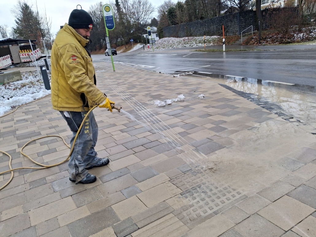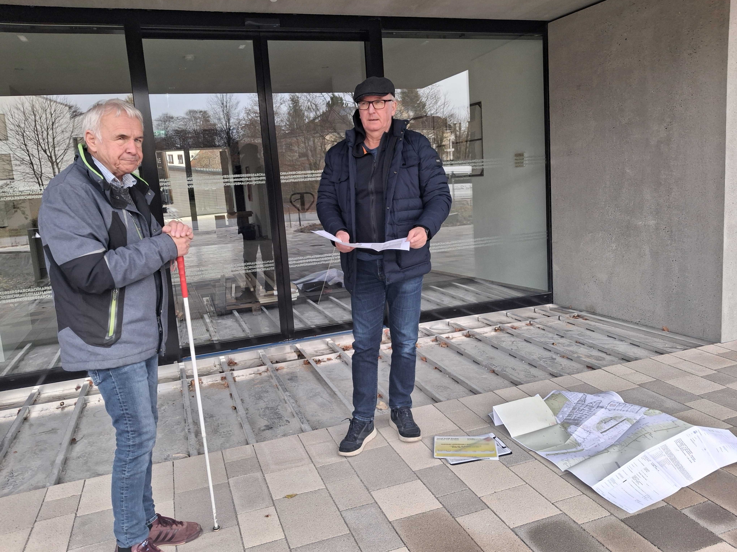 Heute wurde vor dem neuen Berger Rathaus ein Blindenleitsystem mit den Bodenindikatoren in den Boden gefräst. So erreichen auch Menschen mit Sehbehinderungen sicher den Eingang des neuen Gebäudes, die Bushaltestelle davor oder das Wohnzentrum gegenüber. Ein Kontraststreifen wird die Sichtbarkeit noch verstärken. Gemeinsam mit der Inklusionsbeauftragten Sissi Fuchsenberger, dem blinden Weßlinger Gemeinderat Claus Angerbauer und dem Landschaftsplaner Clemens Fauth wurde die Wegstrecke bereits in der letzten Woche festgelegt.